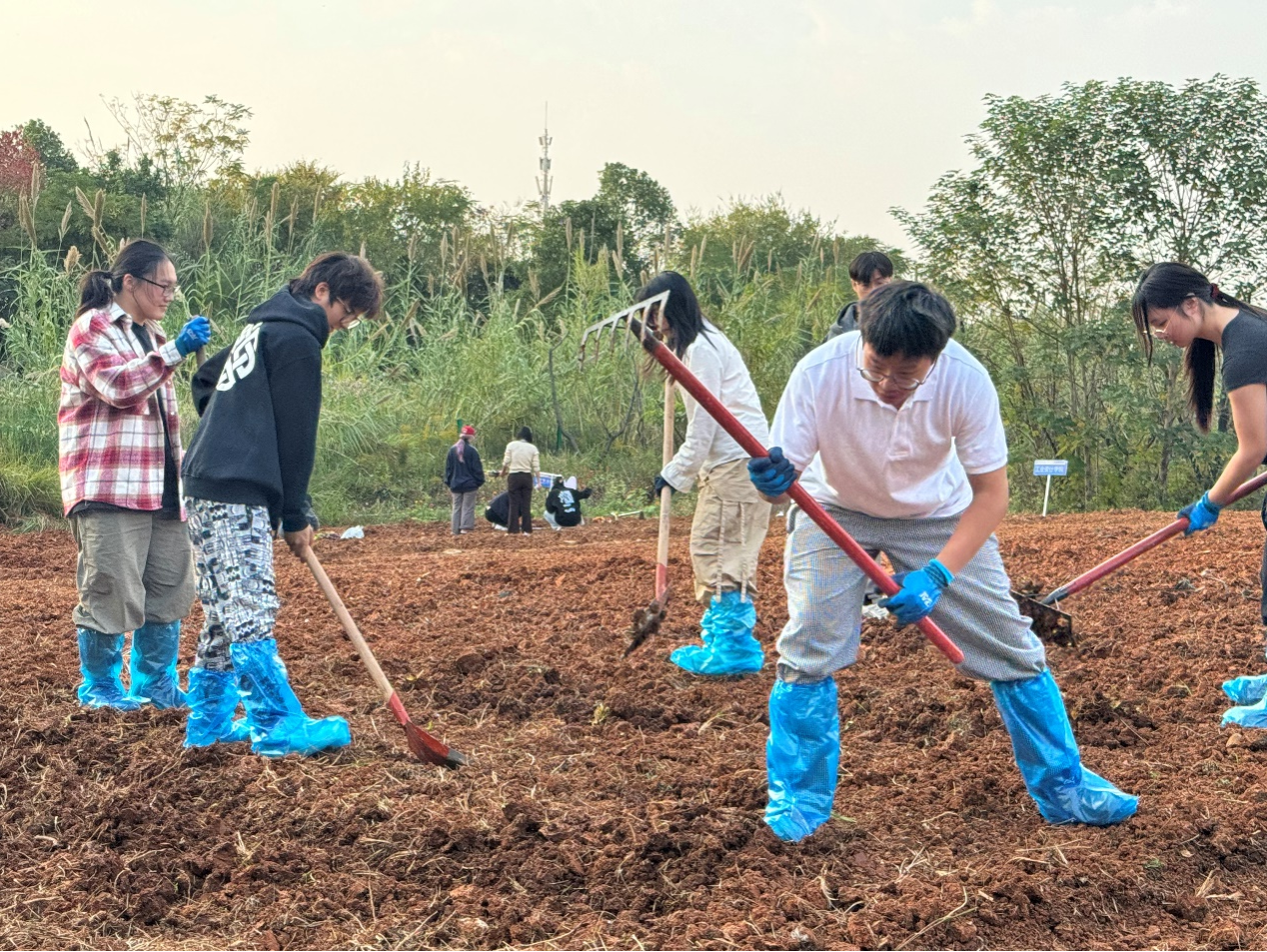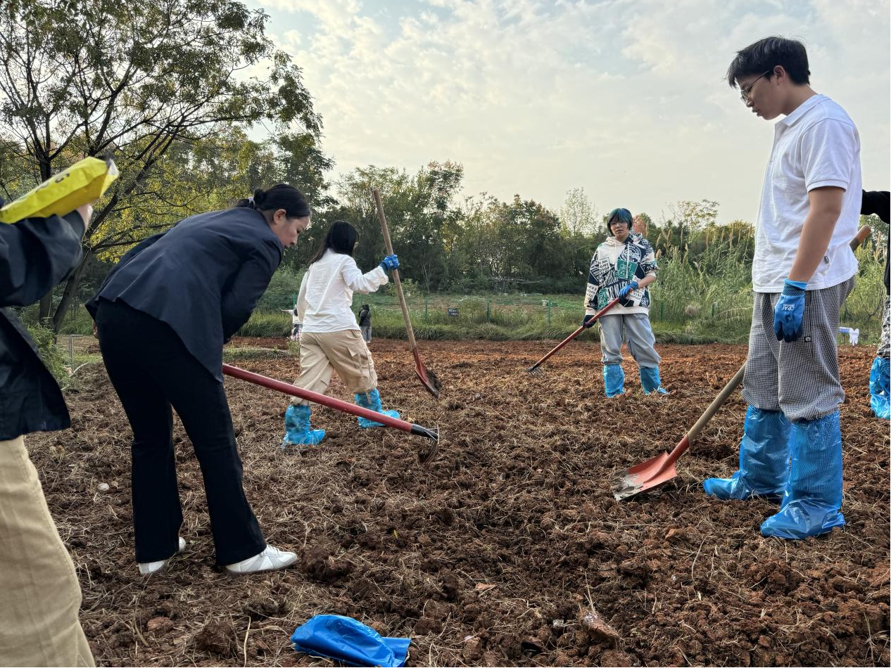 2025年11月6日,湖北美术学院雕塑与公共艺术学院23级雕塑一班走进校园“试验田”,开展了一场别开生面的劳动实践。作为“新农人”培育计划的重要环节,学生们以雕塑系学生的独特视角,在垦地、挖垄、撒种、施肥中体验农耕智慧,感悟劳动之美。
