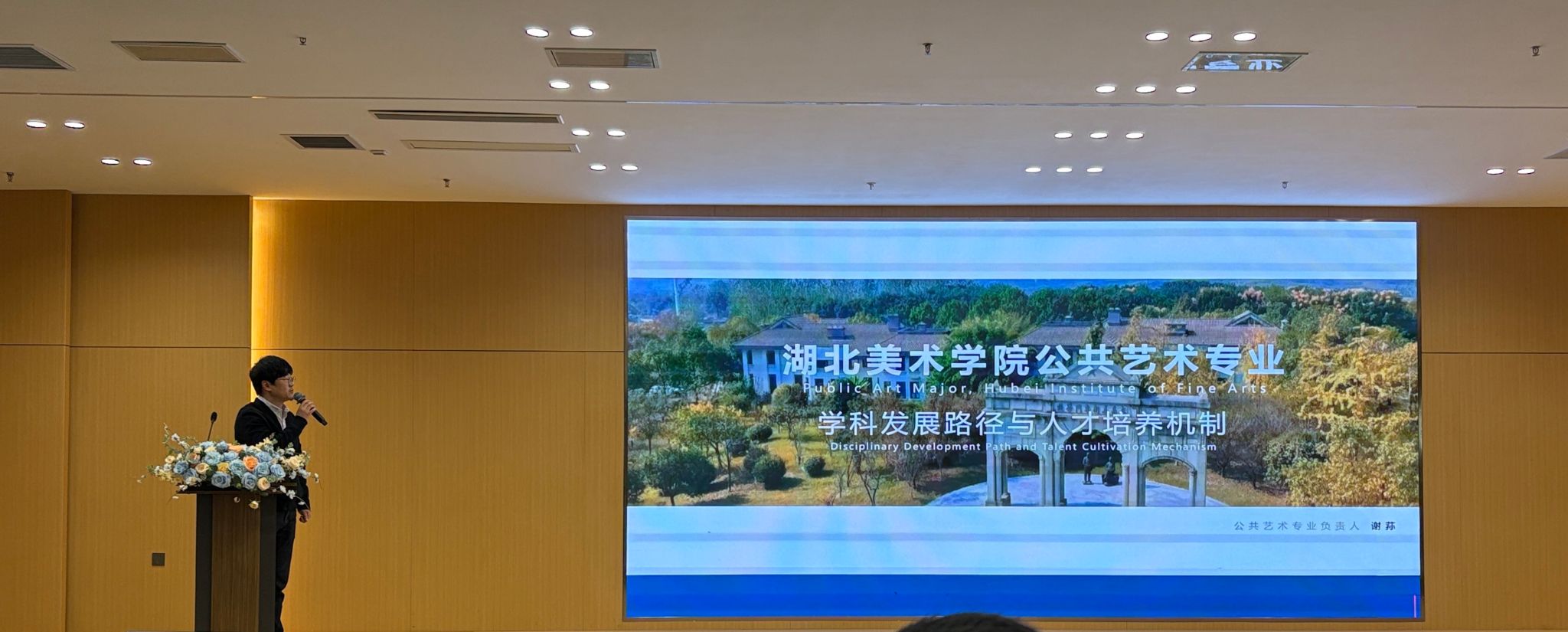 论坛活动期间,谢荪老师作为专业负责人在“公共艺术实践分论坛”作了主题为《湖北美术学院公共艺术专业的学科发展路径与人才培养机制》的发言。分别从“学科发展背景”、“学科发展路径”、“人才培养机制”和“ 后期发展规划”四个方面进行了介绍。强调湖北美术学院公共艺术专业聚焦于在地文化研究,立足长江文明、荆楚文化、进行城市风貌挖掘的学科建设目标和培养符合国家公共美育战略需求的高素质公共艺术人才的人才培养目标。