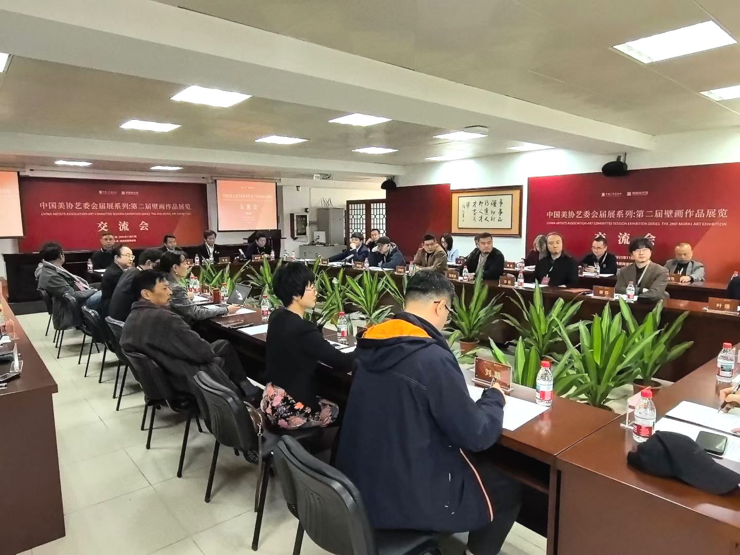 谢荪老师同时也受邀作为发言嘉宾参加了本次展览活动的学术交流会。他就近三十年来从事壁画和公共艺术创作研究的体会与思考进行了分享,尤其关注新时代国家快速发展背景下,关于壁画艺术发展在城市更新进程中所遇到的新机遇和新挑战。