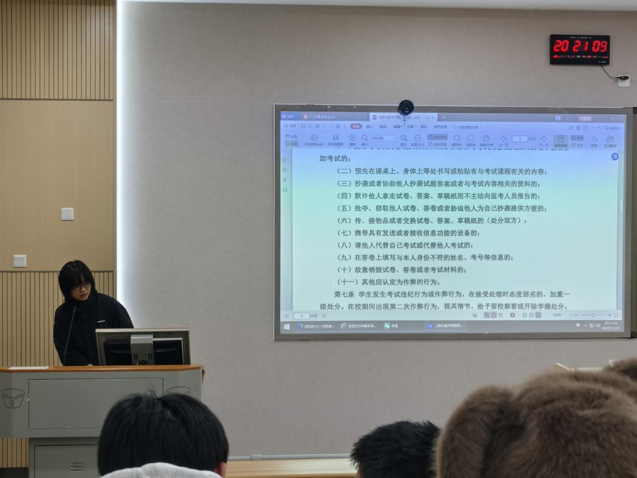 针对即将到来的四六级考试,冀老师开展了严肃的诚信应试教育。她明确告诫学生,切勿心存侥幸,听信不法分子的作弊宣传。并着重说明,考试采用“多题多卷”模式,严禁携带手机(含关机状态)等任何电子设备入场,否则一律以舞弊论处。冀老师带领同学们学习了《湖北美术学院学生考试违规处理办法》,呼吁同学们珍视诚信品格,共同维护公平公正的考试环境。
