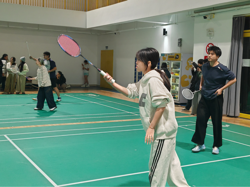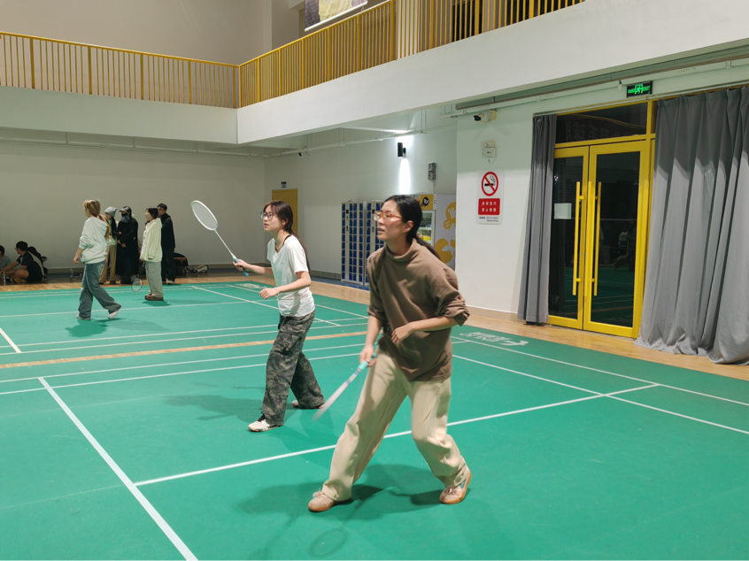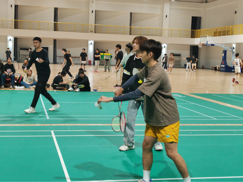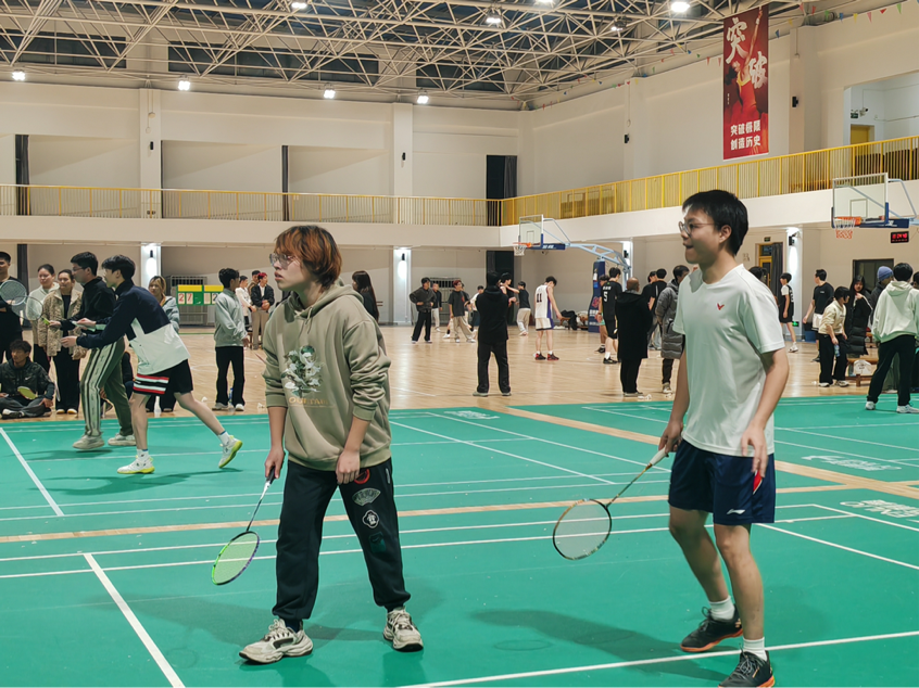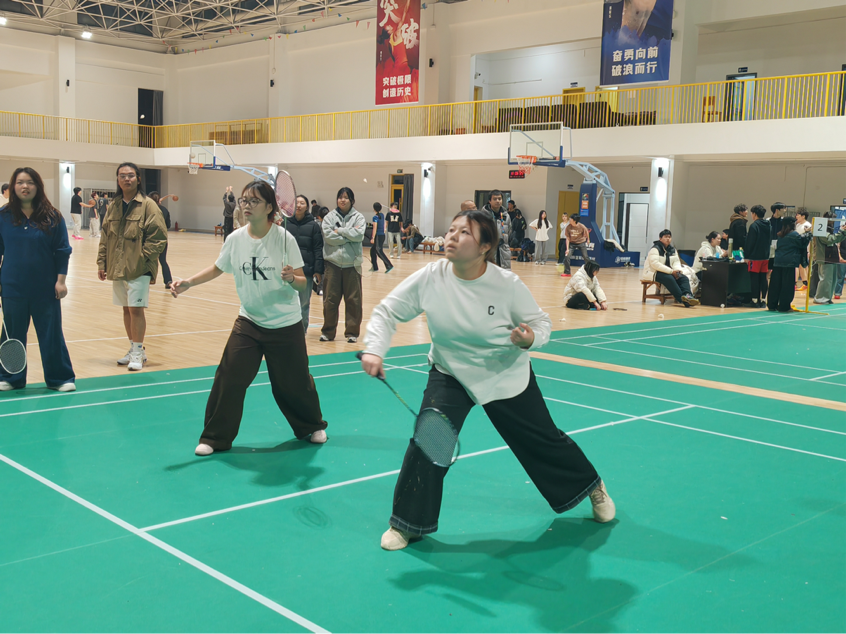 随着裁判哨声响起,首场女子双打对决率先开战。雕塑与公共艺术学院选手凭借默契站位与凌厉攻势掌控节奏,后场精准扣杀与网前灵活截击交替上演,羽毛球如流星般在球网两端划出优美弧线;艺术教育学院组合不甘示弱,以稳健防守与多变吊球顽强反击,每一分的争夺都牵动着在场观众的心弦,加油助威声此起彼伏。随后男子双打赛场,双方选手尽显细腻技术与协作智慧,跑动、起跳、挥拍一气呵成,攻防转换间展现出扎实的运动功底与坚韧的竞技精神,比分交替上升,场面紧张焦灼。