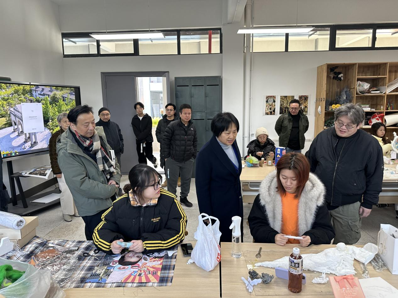 2026年1月8日上午,校党委书记鲍清芬、纪委书记张以林带队深入雕塑与公共艺术学院开展本学期跨专业选修课教学检查工作,对实验室与课堂教学情况进行了实地检查与指导。