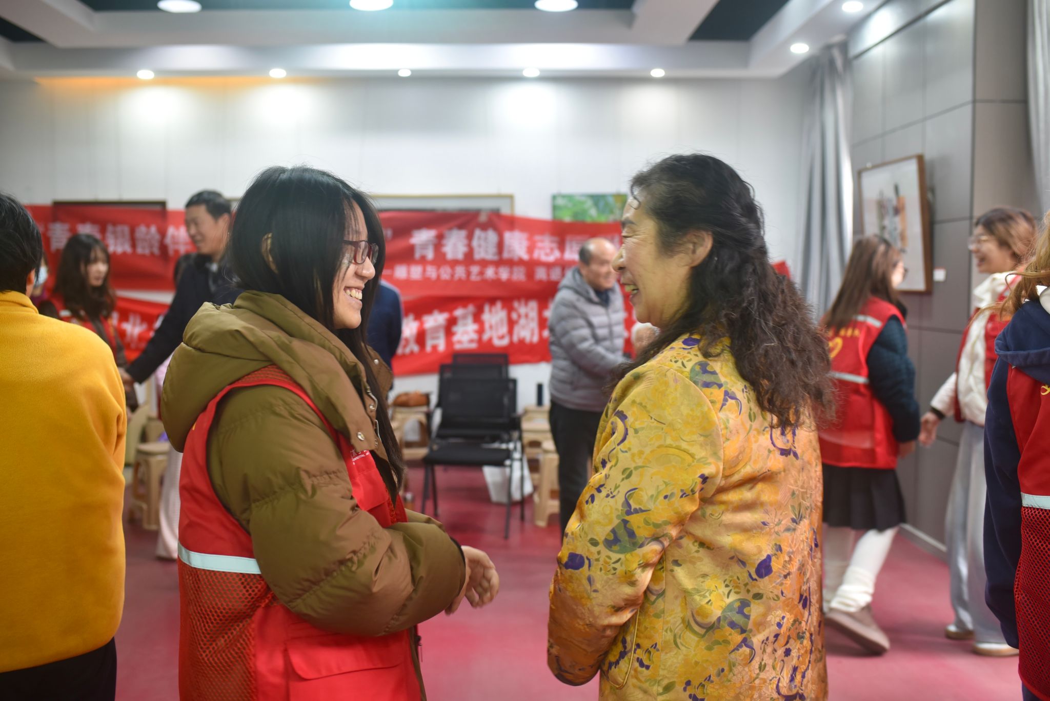 本次活动由雕塑与公共艺术学院办公室主任、青春健康教育示范基地负责老师、美育青春健康同伴社负责人陈玲带领美育青春健康同伴社团队共同策划组织实施。一场游戏,一次握手,让“一老一小”在欢笑中收获健康,在互动中传递温情,也充分彰显了学校五育并举、健康第一的育人导向。