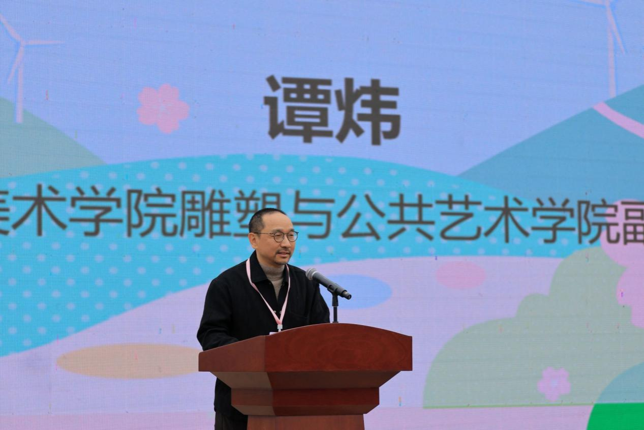 陈辉教授在发言中表示,大幕艺术季是高校艺术力量扎根乡土、服务基层的重要实践,是公共艺术真正走进田野、走进村民生活的鲜活案例。它打破了我们以前在拘泥在象牙塔的一种环境里头的一种自我的吟唱的一种方式。他希望以此次活动为纽带,持续深化校地合作,推动艺术创作与乡村空间、乡土文化深度融合,让艺术成为乡村可持续发展的持久动力。